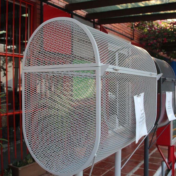 Base: Patas en caño de 2” pared 2 mm con 80 cm de alto con ángulos cruzados para empotrar